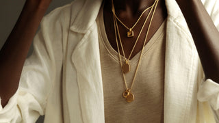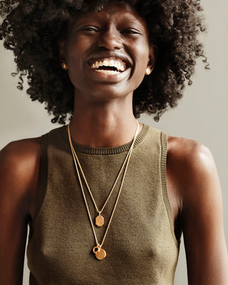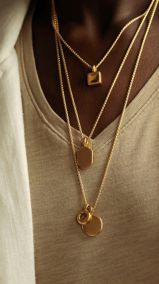 Solid 18K gold pendants and glossy, velvety chains — all with the signature softness, simplicity, and heft of our entire collection